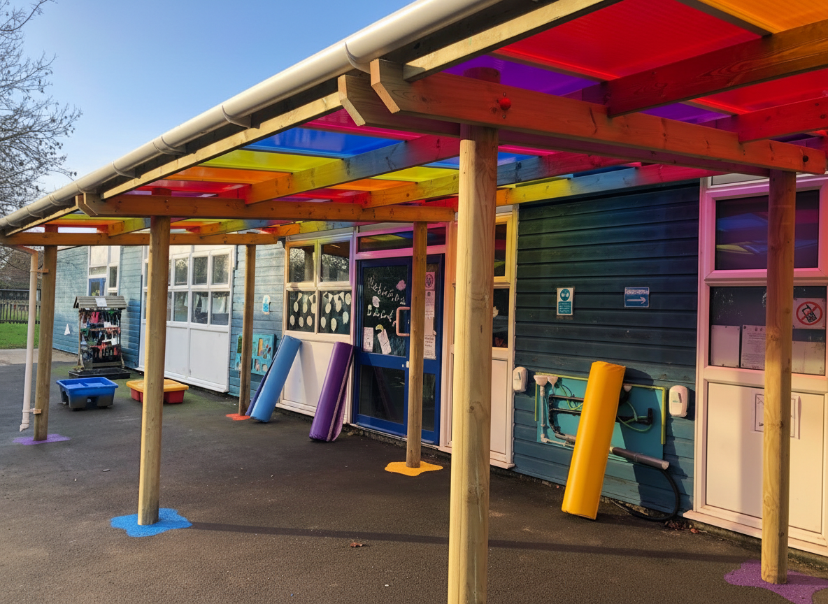 Add coloured polycarbonate panels or painted timber for a vibrant, child-friendly look that matches your school colours.